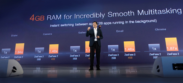 จากนั้น นายร็อบบี้ ซวินเน็น ประธานบริษัทอินเทลและผู้จัดการทั่วไปของภูมิภาคเอเชียแปซิฟิคและญี่ปุ่น ก็ได้ขึ้นมาบนเวทีคู่กับนายเฉินเพื่อฉลองมิตรภาพที่ยาวนานระหว่างสองบริษัท “อินเทลได้โชว์ศักยภาพนวัตกรรมล้ำสมัย และได้รับเลือกจากเอซุสให้เป็นส่วนหนึ่งที่สำคัญของเซนโฟน ซึ่งแสดงถึงความก้าวหน้าของพวกเรา” นายซวินเน็นกล่าว “เราภูมิใจที่ได้เป็นพันธมิตรทางธุรกิจกับเอซุสมาอย่างยาวนาน โดยได้มอบนวัตกรรมใหม่ๆ ให้กับทุกท่านอีกครั้งในเซนโฟน 2 ซึ่งเอซุสจะมอบประสบการณ์การใช้อุปกรณ์สื่อสารเคลื่อนที่สุดวิเศษ โดยใช้องค์ประกอบที่มีความทันสมัย รวมกับระบบประมวลผลอินเทล อะตอม 64 บิท มาพร้อม เทคโนโลยี Advanced Intel XMM 7260 สำหรับรองรับสัญญาณ LTE”
