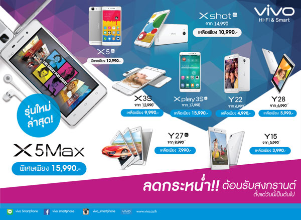 โดยการลดราคาจะมีผลตั้งแต่วันนี้เป็นต้นไป สามารถหาซื้อสมาร์ทโฟน vivo ได้ผ่านร้าน Jaymart, CSC, TG Fone และร้านจำหน่ายสมาร์ทโฟนชั้นนำทั่วประเทศ...